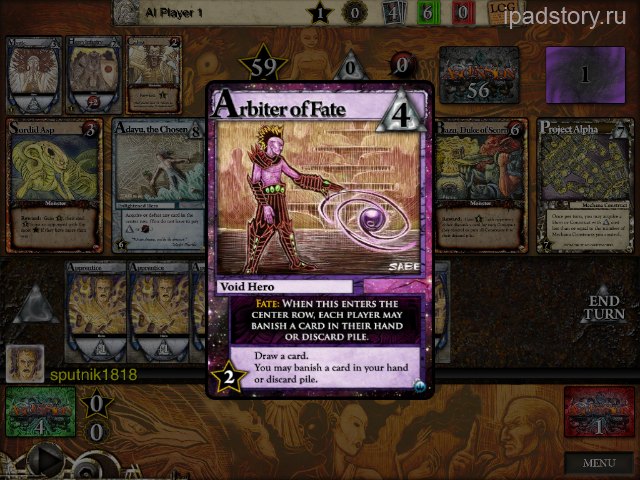 Карты в Ascension: Return of the Fallen очень интересны. Причем даже без покупки дополнения внутри игры вы можете изучить все карты в меню. Рекомендую это сделать. Есть новшества вроде Арбитра судьбы: при появлении этой карты в центре она заставляет сбрасывать свою карту.