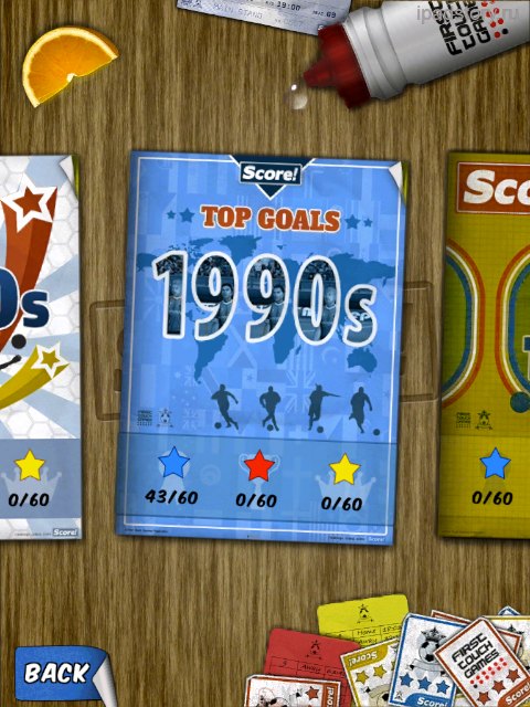 Все голы побиты на четыре пакета: 80-е, 90-е, 2000-е и 2010-е. В каждом паке по 20 голов, но их можно проходить трижды. Вначале на уровне новичок нужно просто забить. На уровне профессионал необходимо набрать 2 звезды. Ну и на самом сложном уровне требуются 3 звезды, что очень и очень непросто.