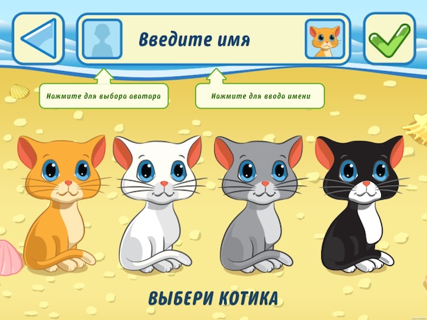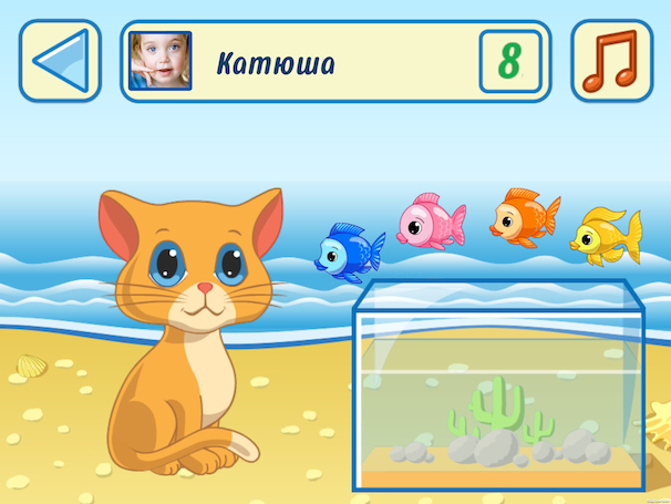 Вашему вниманию развивающая игра для iPad и iPhone «Smart Kitty» для детей, разработанная педагогом-психологом Татьяной Недвецкой, которая отлично разбирается в детской психологии. Сразу после начала работы программы, нужно записать в специальное поле имя ребенка и сделать его фото для профиля. Это сделано, чтобы отслеживать итоги в случае, если на одном iPad собираются играть несколько детей. Ребенку предлагается избрать окраску котенка, который будет с ним.