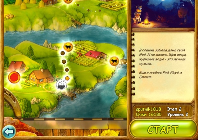 Между уровнями довольно юморные вставки, основанные на том, что корова ведет свой дневник и записывает, что ей запомнилось за день (уровень). Иногда философские размышления такие, что хоть стой хоть падай.