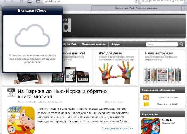 iCloud Tabs синхронизирует табы между браузерами Сафари на ваших устройствах. Будет актуально тем, у кого несколько iOS устройств.