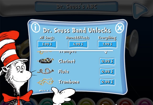 Что это за песни такие, интересно? Никогда их не слышала. Поискала в Интернете. Оказывается, это саундтреки к интерактивным книгам Доктора Сьюза, выпускает которые всё та же компания Oceanhouse Media. Я заинтересовалась и скачала несколько их приложений. Все они на английском языке, но для детей. Следовательно, можно вместе с ними учить английский и читать интересные книги. ![]()