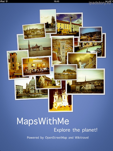 Продолжу знакомить читателей нашего сайта с полезными приложениями для iPad. Следующее на очереди приложение MapsWithMe — это бесплатные оффлайновые карты всего мира для вашего iPad. Задача разработчиков этого приложения — сделать бесплатные и не занимающие много места в памяти карты. Карты используются из проекта OpenStreetMap.