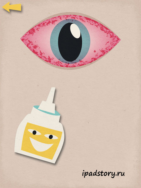 Ну что же, придется делать операцию. Поможем пациенту избавиться от лишней детали в животе. Для этого элемент можно вести пальцем по кишечнику, либо наклонять iPad в соответствующую сторону. Деталь конструктора, по всем законам физики, будет следовать вашим движениям.